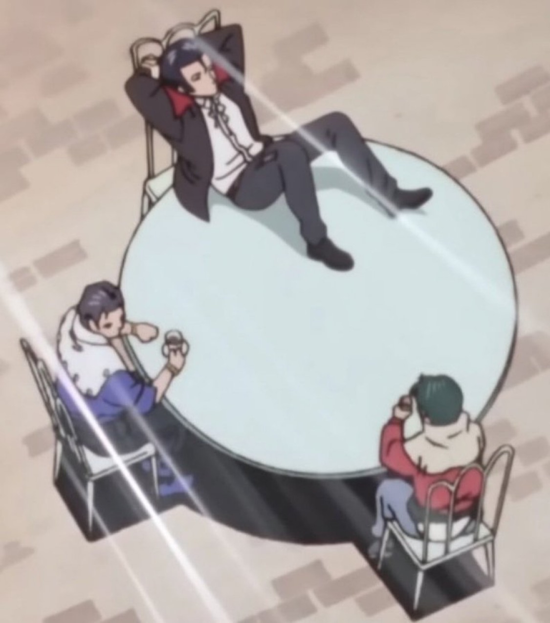 そもそも真ん中一本足のテーブルで蹴りはなかなか厳しいよ兄さん!
