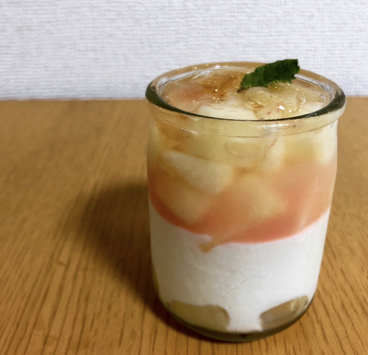 シンプルな牛乳寒天をベースに華やかな桃の寒天を重ねた質実剛健でありながら可憐さを纏った寒天