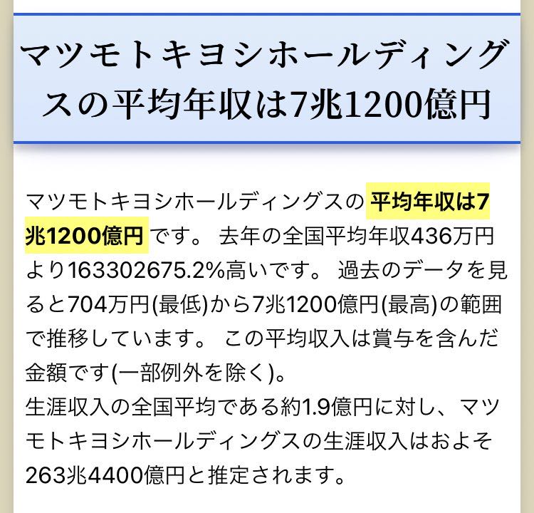 マツキヨ社員の給与の合計 約3500兆円