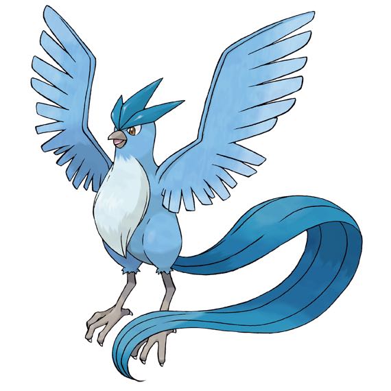 伝説の とりポケモン。空気中の 水分を 凍らせ 吹雪を 作り出すことが できる。