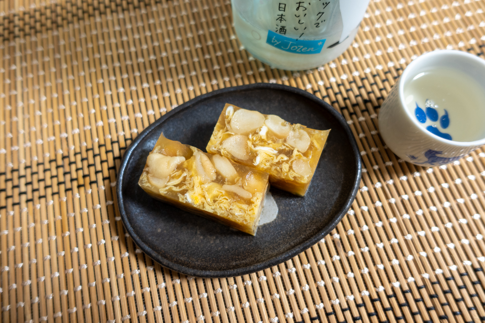 だし汁作って寒天と卵入れる前にちょっと分けておいて白玉麩にひたす