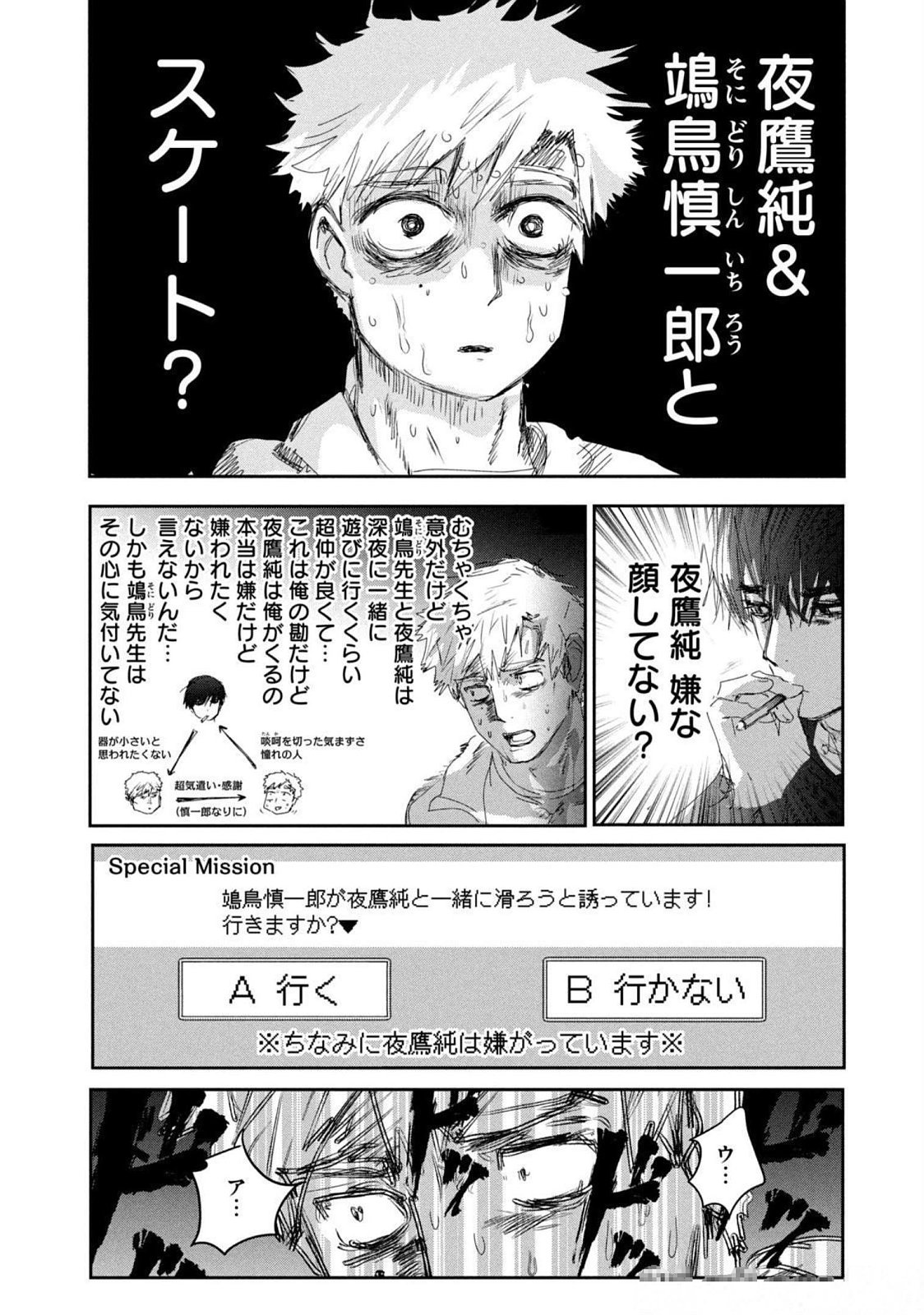 社会性終わってる男だけどスケートに関してだけは真摯なんだというのがよくわかる構図でもある