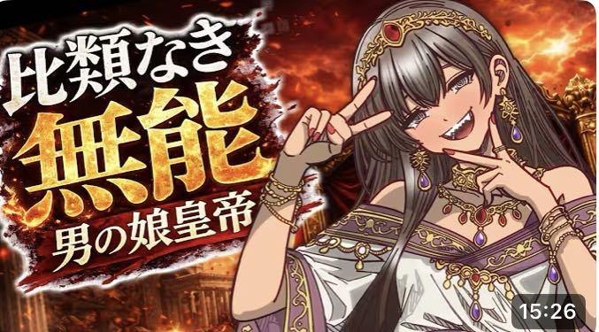 スレ画の動画のラストでも言われてるみたいに宗教儀式と性癖の合間合間に雑にやってたとされる虐殺行為はマジでこいつ早くなんとかしないといけないけど自分らが正当性推して皇帝にした手前異常性癖ってだけで殺すまで行くとその後自分らの立場がないなぁとつけ足された説もあります
