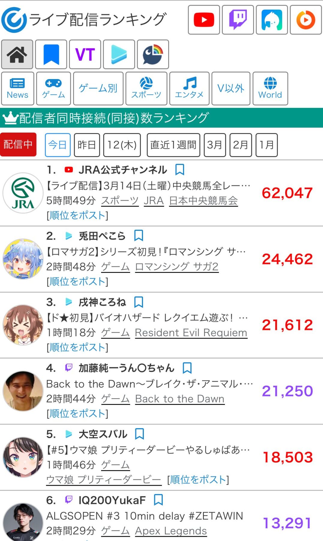 これの少し前の時間帯の同接バトルだとガンダムチャンネルが食らいついてたの結構びっくりした