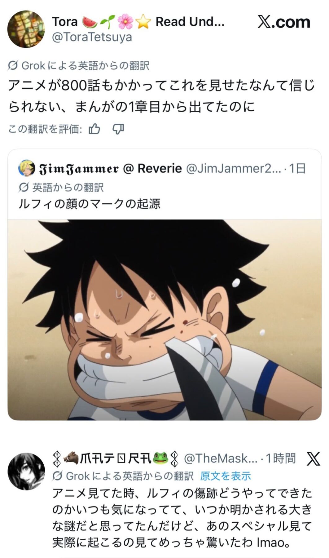 アニメ勢にとってルフィの目の下の傷って今まで謎だったのか…