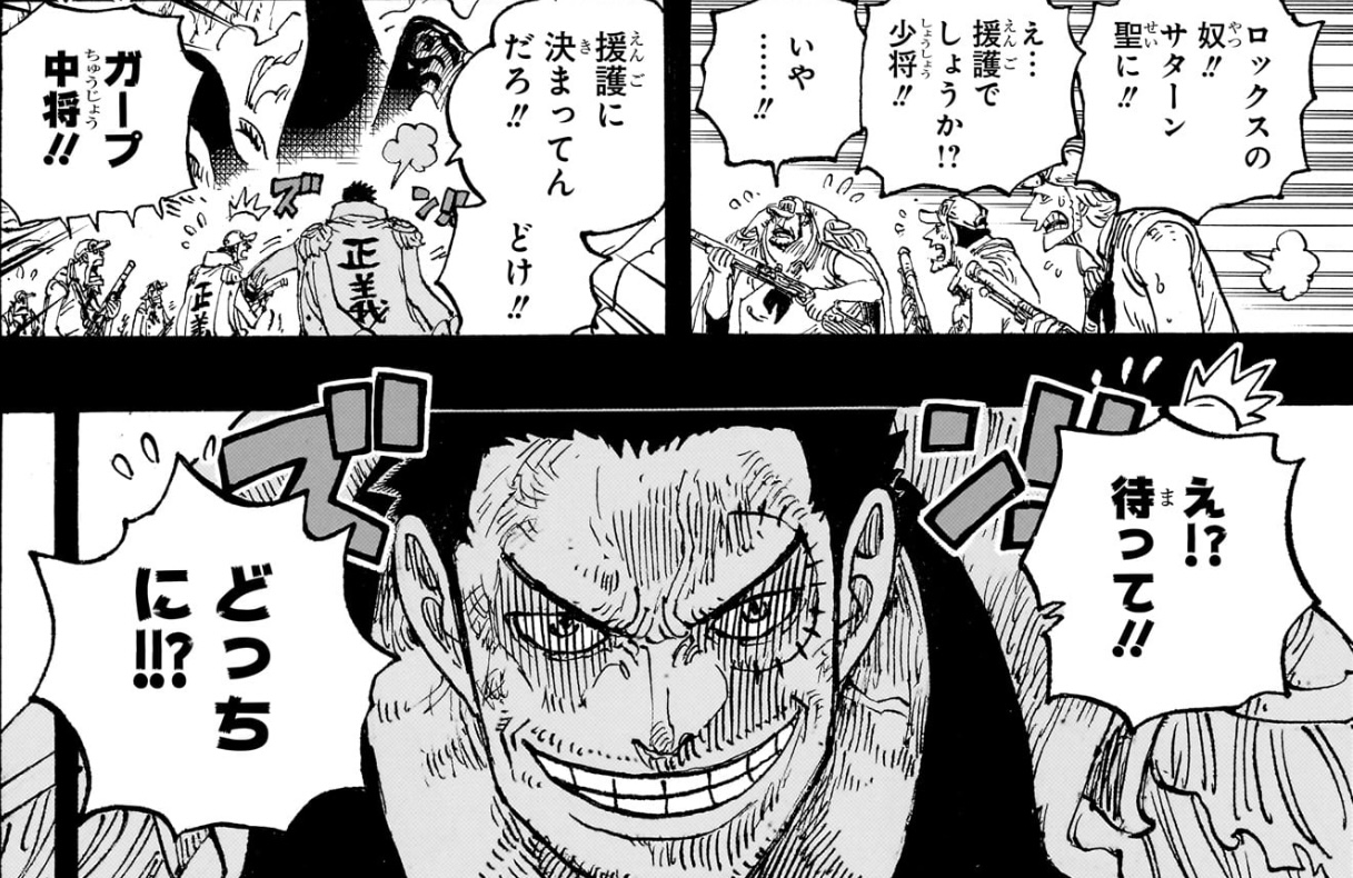 (ガープ含め全員でイム様を攻撃し始めたがロックスが反転させられたので)ガープとロジャーが組んで止めた