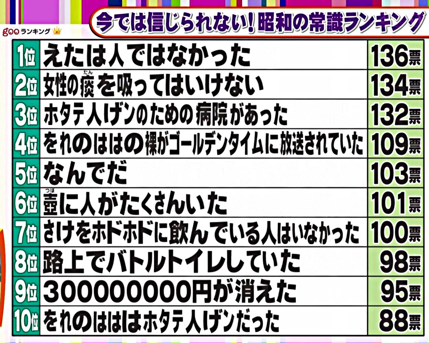 母の裸がゴールデンタイムに放送されてた理由が10位で明らかになる構成いいよね