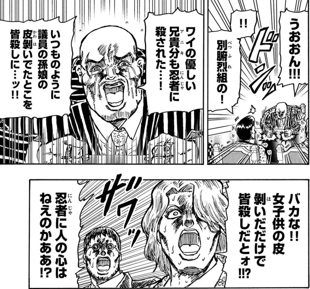 例えば忍者をおびき寄せるために罪のない女(スケ)を大量に薬漬けにするとかだと付き合ってらんねえ…ってなって部下がチャカで弾こうとしたりする